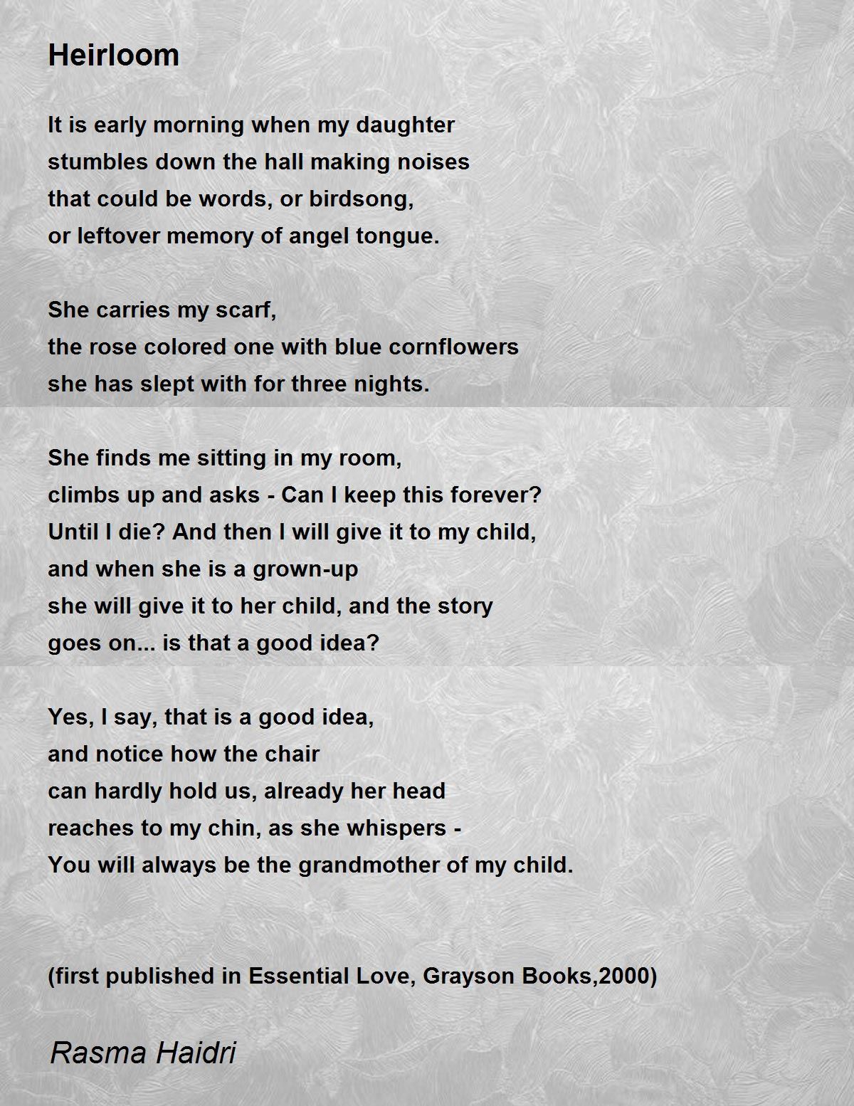 (first published in Essential Love, Grayson Books,2000)