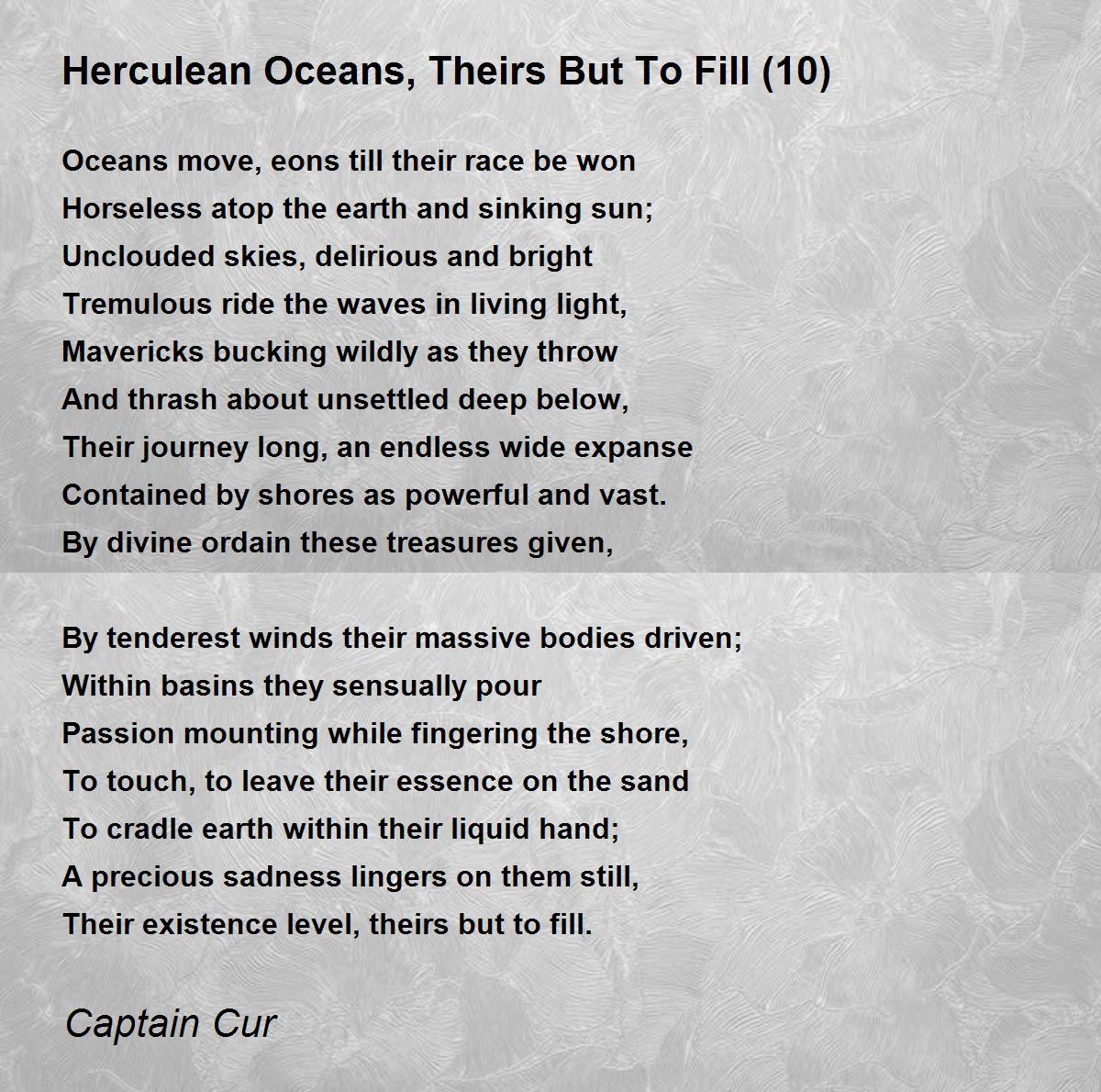 Oceans move, eons till their race be won