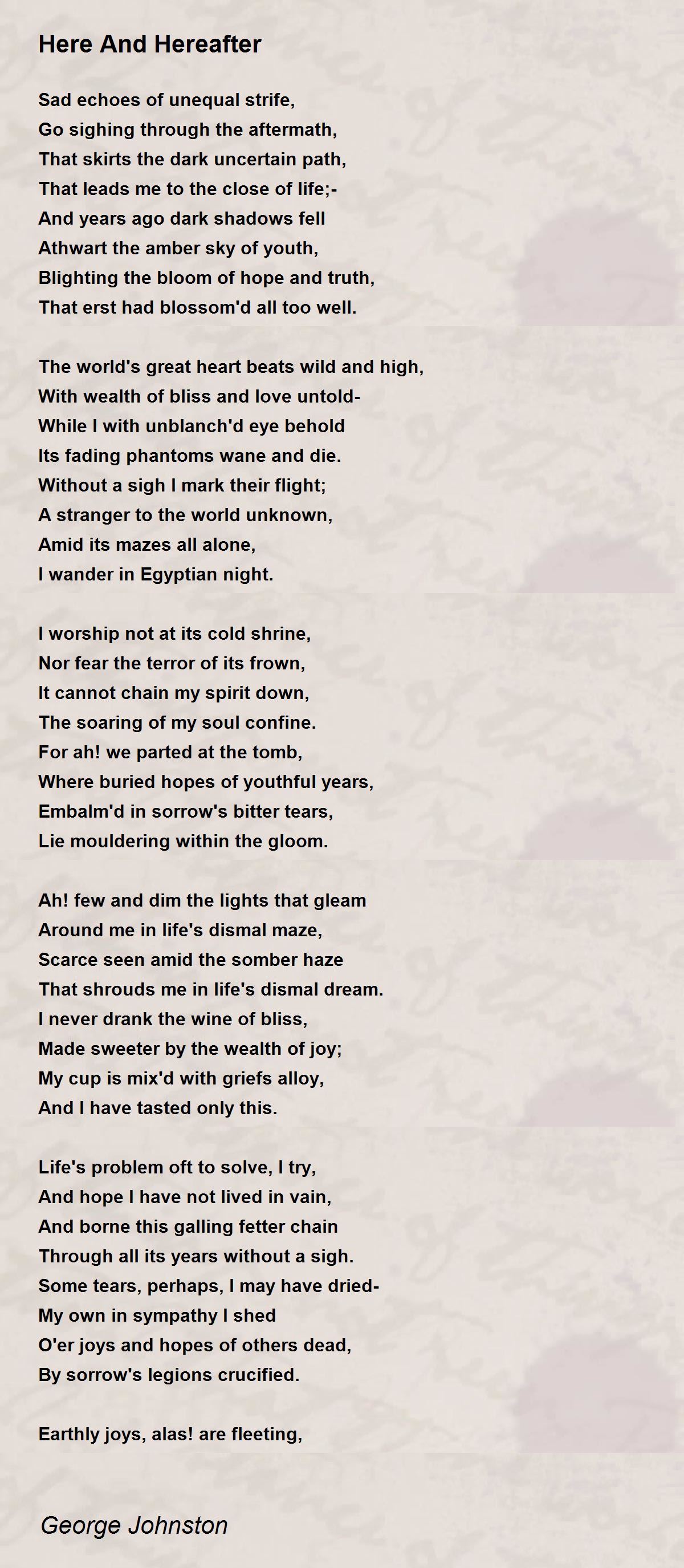 O'er joys and hopes of others dead,