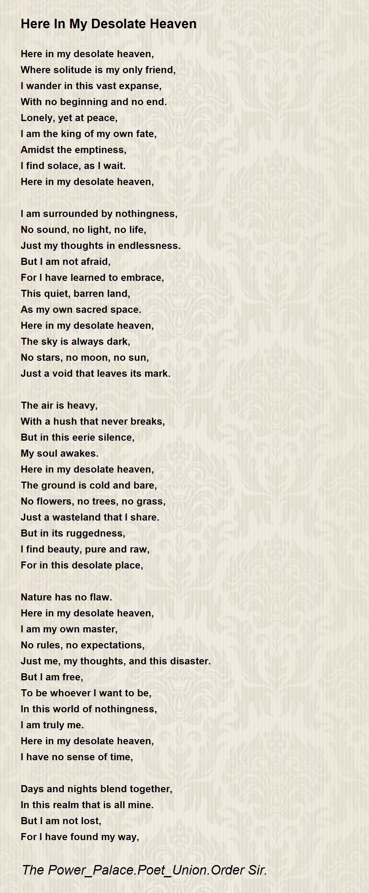So here in my desolate heaven,