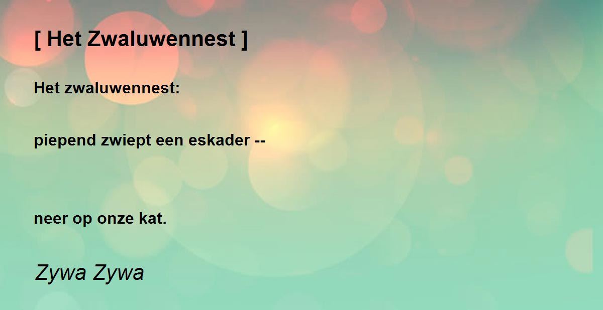 Het zwaluwennest: piepend zwiept een eskader -- neer op onze kat.