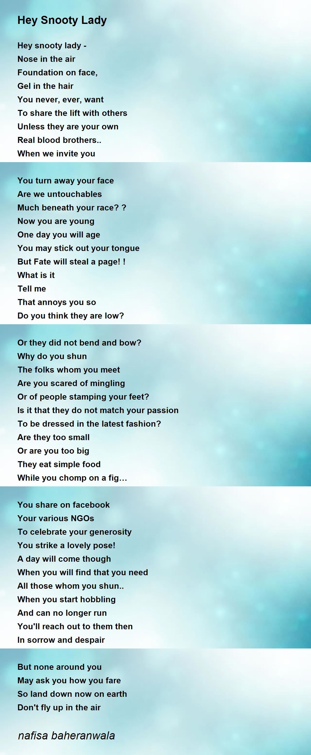 Hey snooty lady -