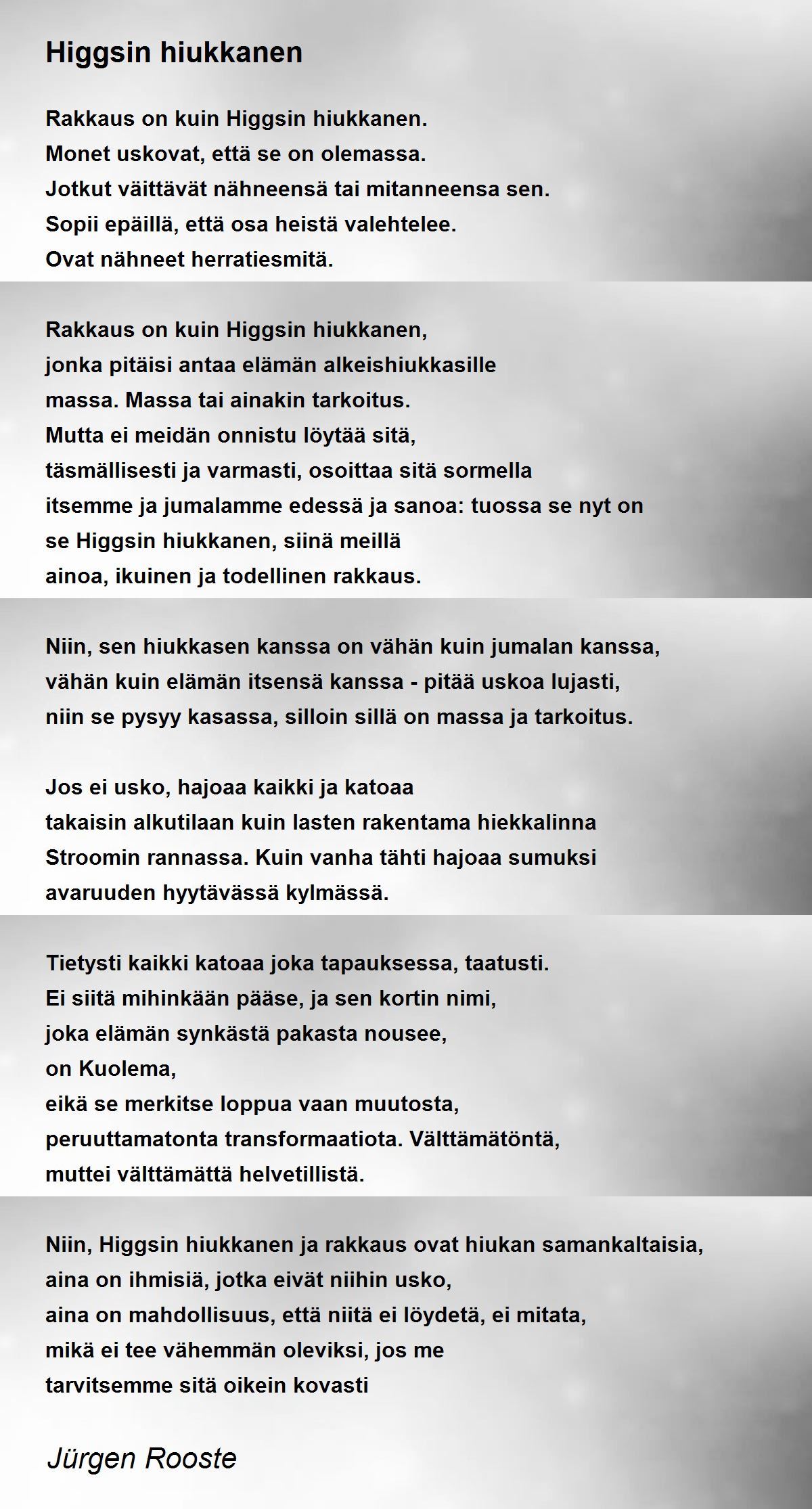 Rakkaus on kuin Higgsin hiukkanen,