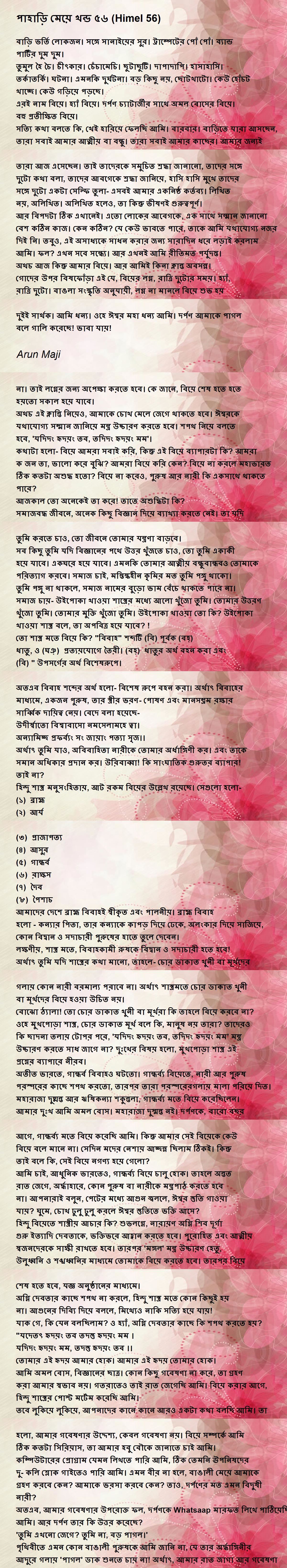আমি অমল বোস, বিজ্ঞানের ছাত্র। কোন কিছু গবেষণা না করে, তা গ্রহণ করা আমার স্বভাব নয়। গতরাতেও তাই রাত জেগেছি আমি। বিয়ে করার আগে, হিন্দু শাস্ত্রের পোস্ট মর্টেম করেছি আমি।