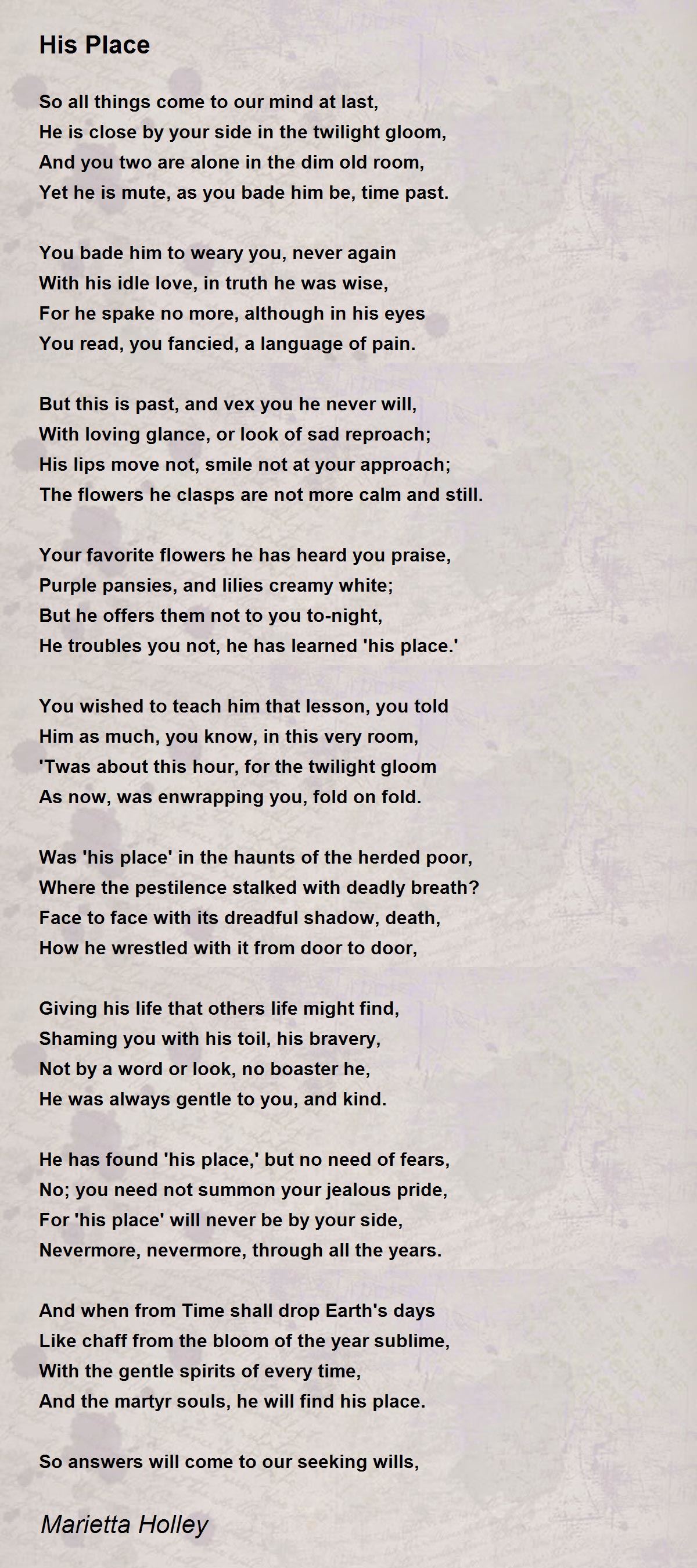 Was 'his place' in the haunts of the herded poor,
