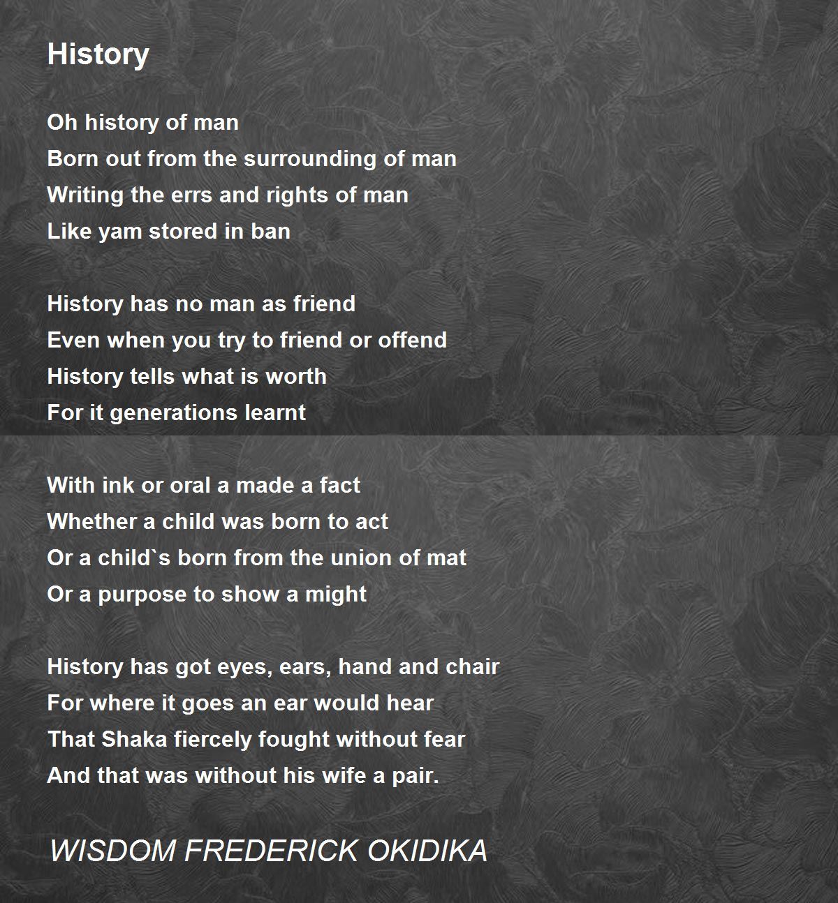 An insightful piece of poetry, well conceived and nicely embellished with poetic rhyme and rhythm. A work of an intricate mind. Thanks for sharing, Wisdom.