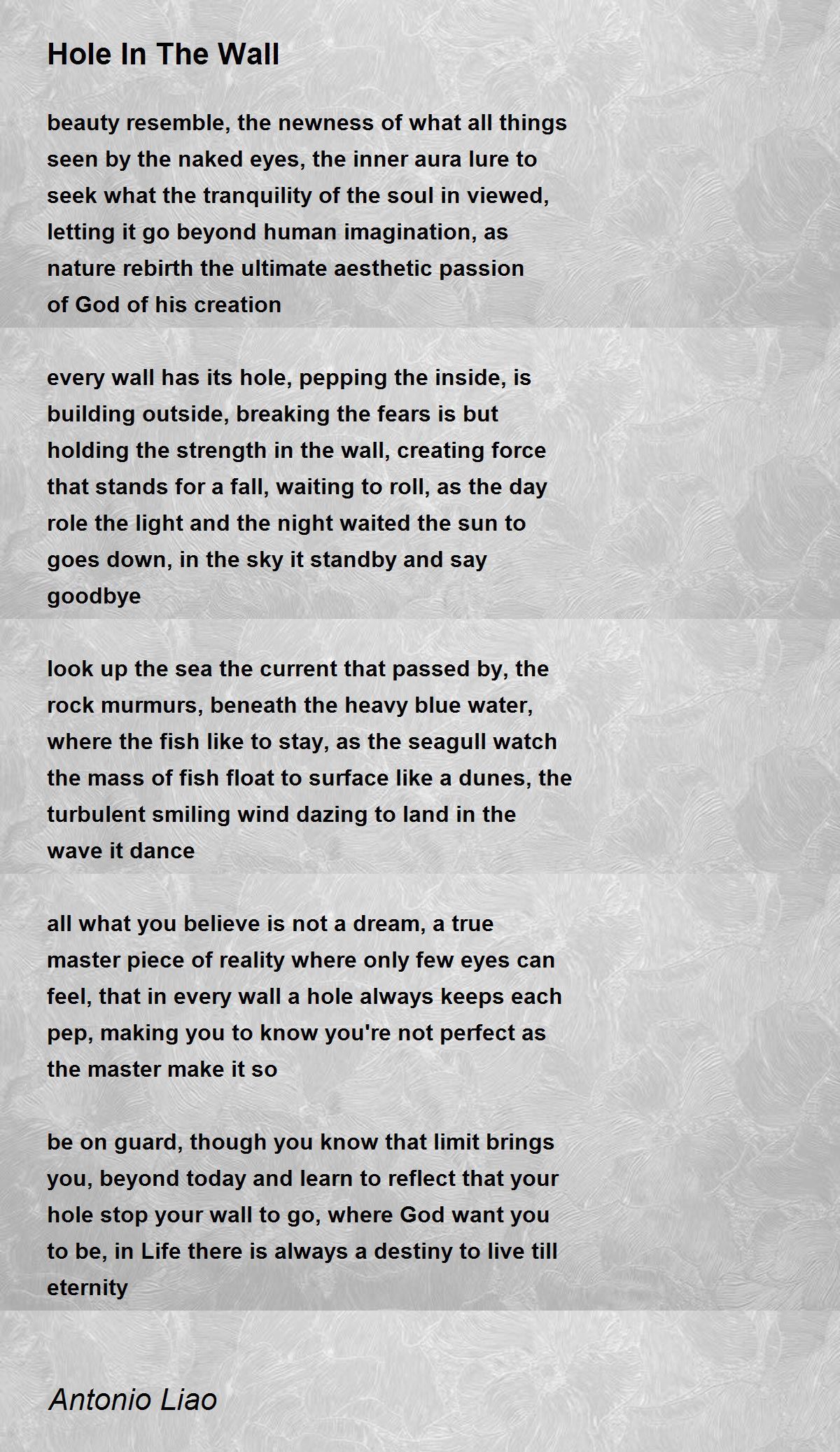 every wall has its hole, pepping the inside, is