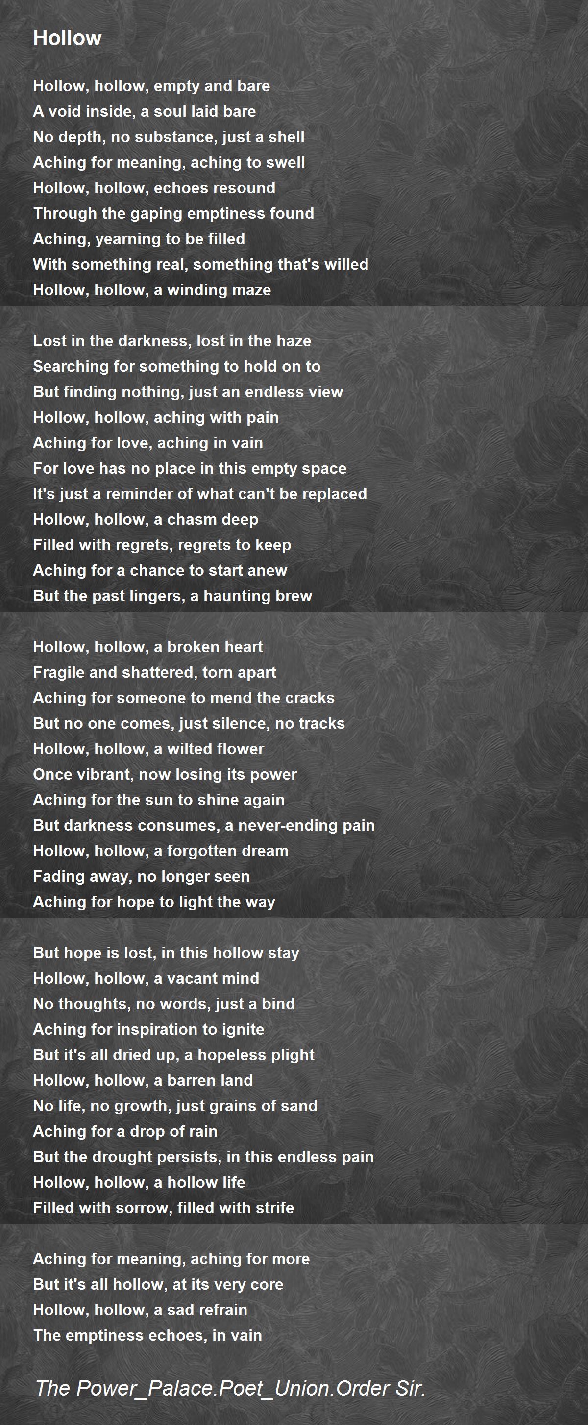Hollow, hollow, a tearful plea