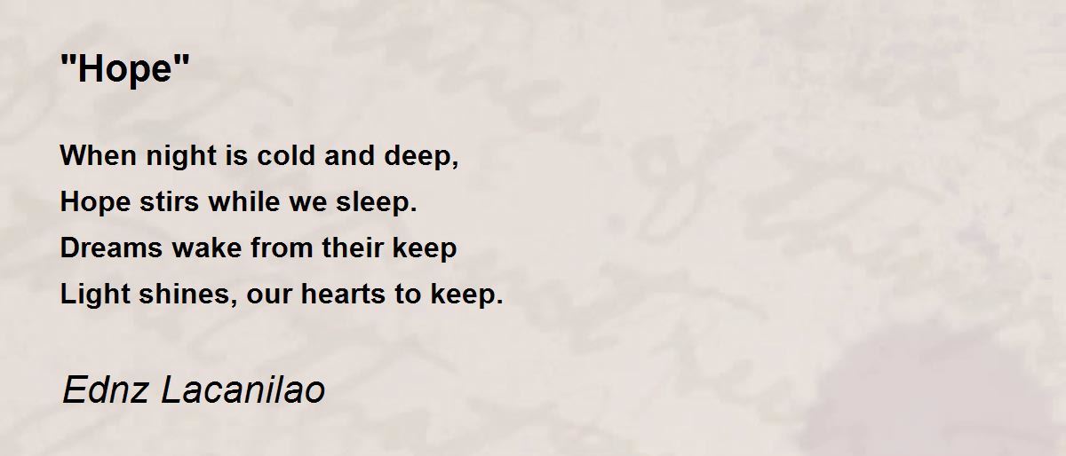 When night is cold and deep, Hope stirs while we sleep. Dreams wake from their keep Light shines, our hearts to keep.