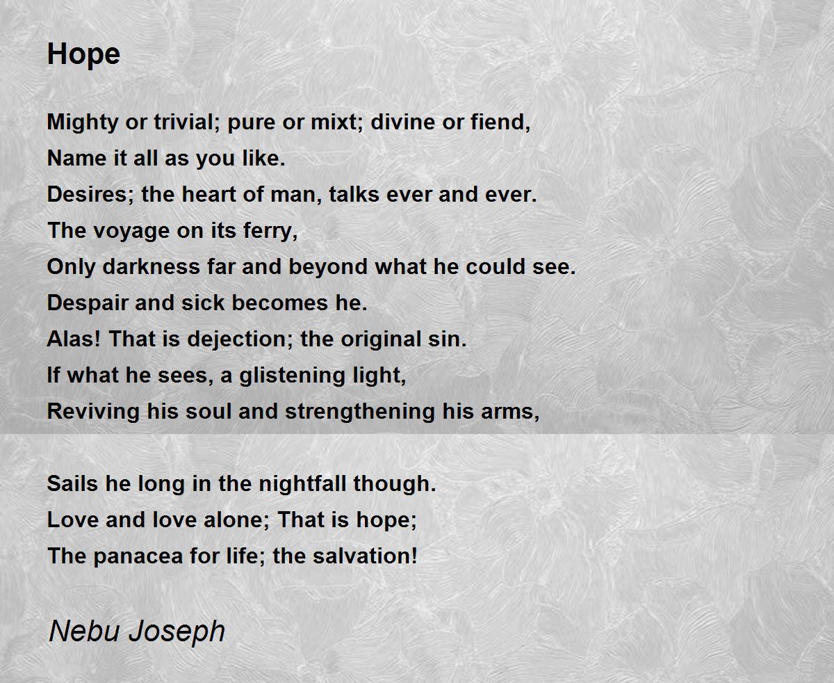 Yes, that nicely sums up the scope of hope in our lives. Thanks.