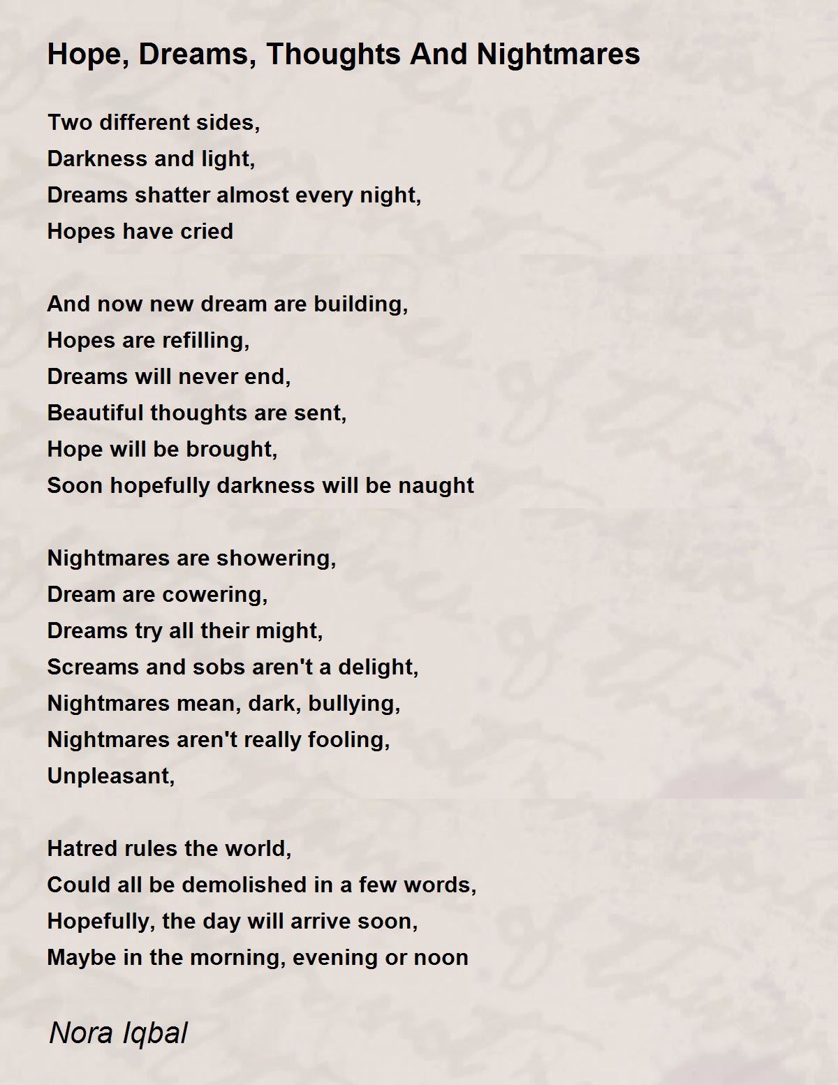 ''Hatred rules the world'' it seems so quite often, and not only in nightmares... Welcome at PH, Nora. Keep on writing/posting