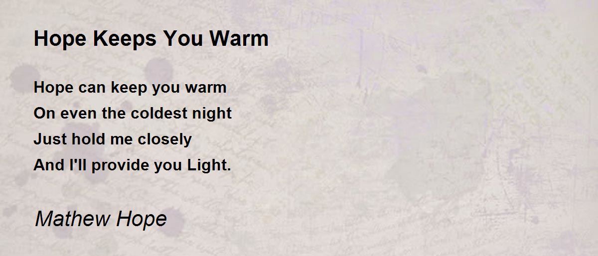 Hope can keep you warm On even the coldest night Just hold me closely And I'll provide you Light.