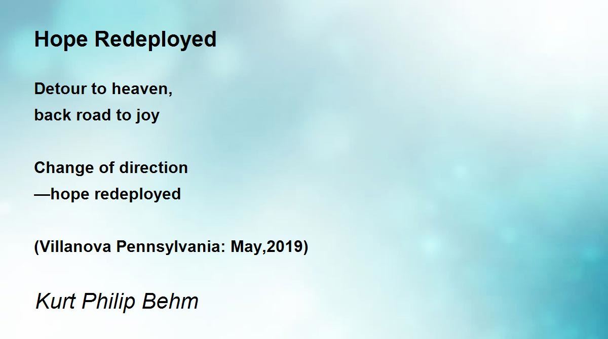 Detour to heaven, back road to joy Change of direction —hope redeployed (Villanova Pennsylvania: May,2019)