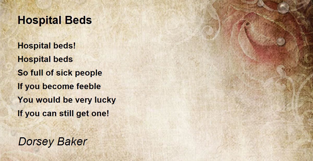 Hospital beds! Hospital bedsSo full of sick peopleIf you become feebleYou would be very luckyIf you can still get one!