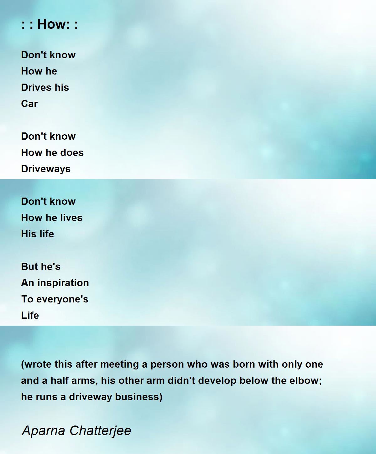 (wrote this after meeting a person who was born with only one and a half arms, his other arm didn't develop below the elbow; he runs a driveway business)