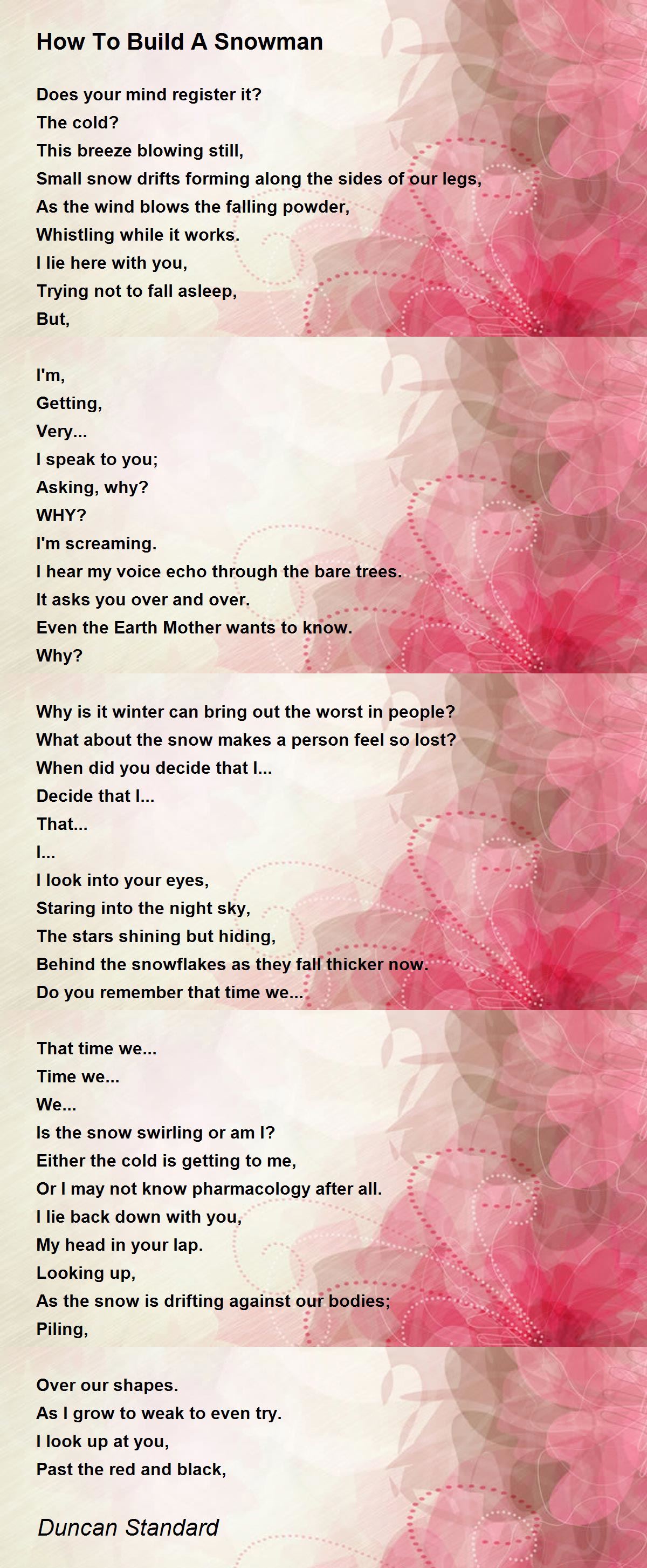 As the snow is drifting against our bodies;