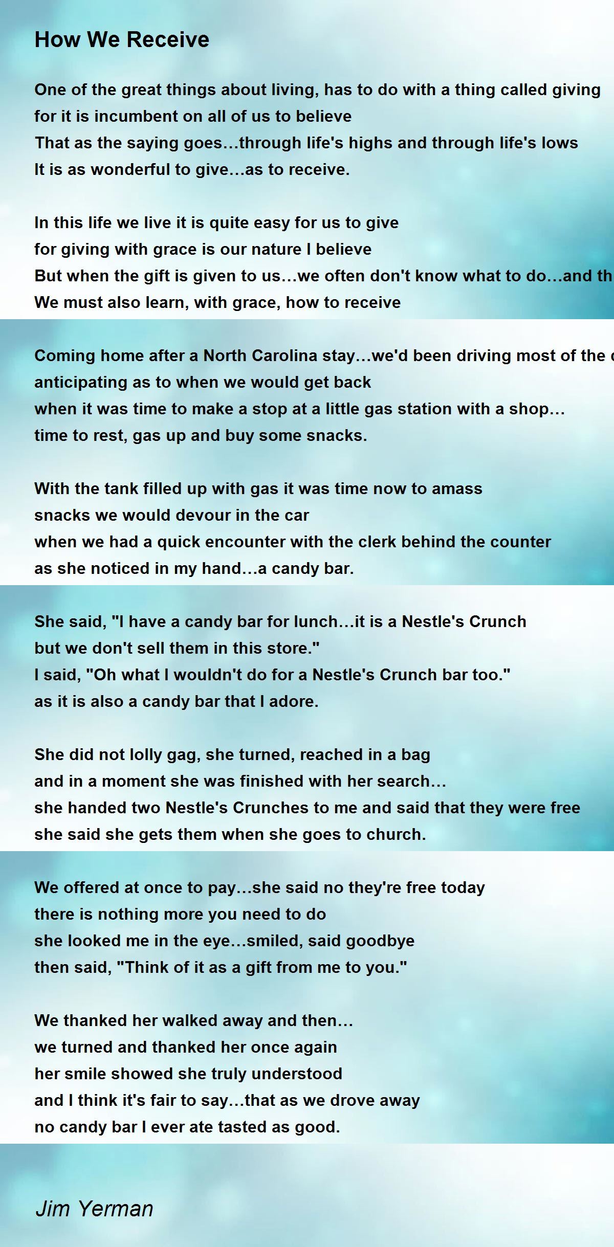 She said, "I have a candy bar for lunch…it is a Nestle's Crunch