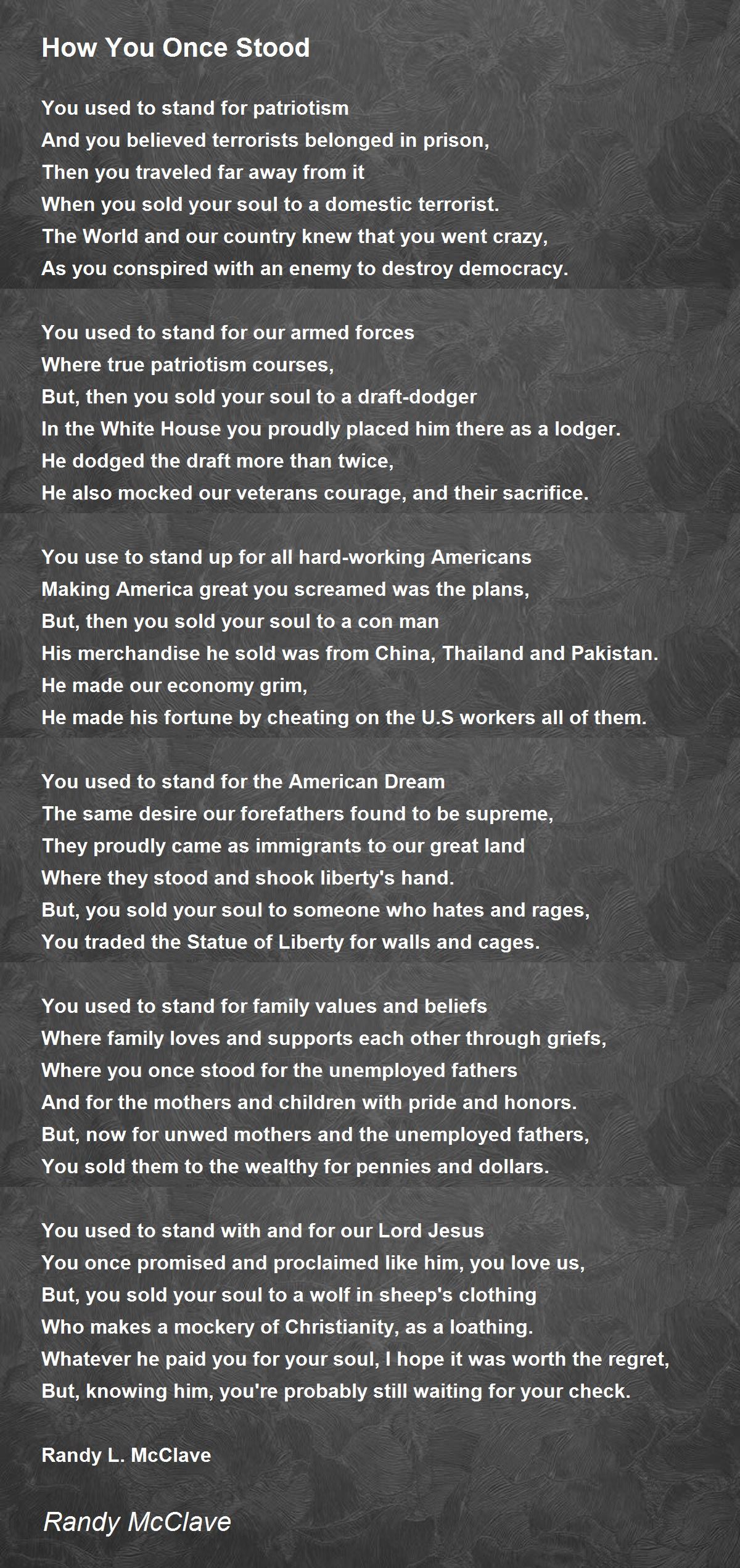 You used to stand with and for our Lord Jesus