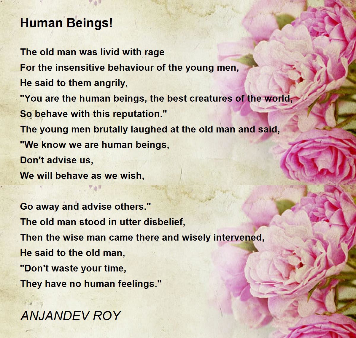 "You are the human beings, the best creatures of the world,
