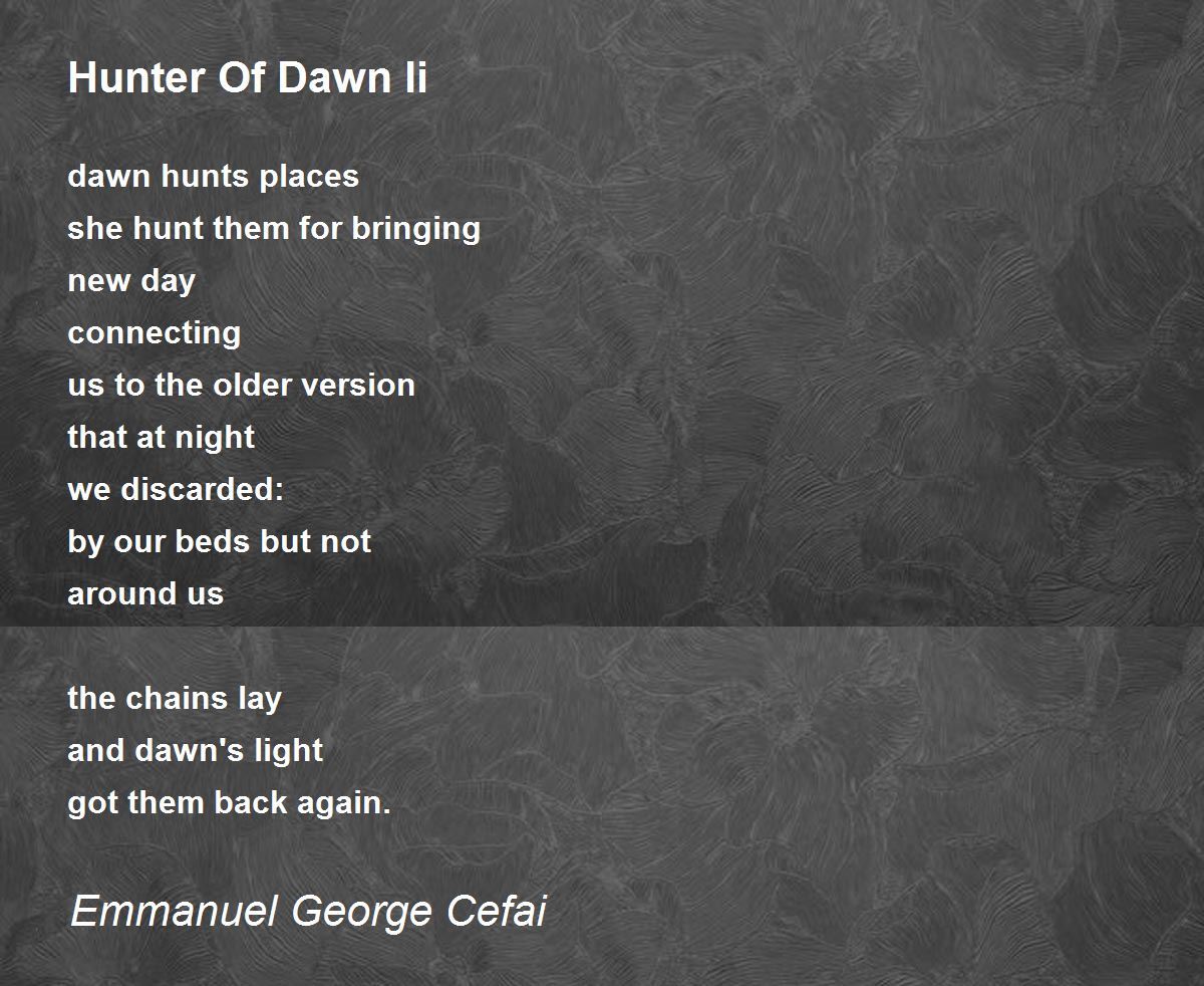 Poem has a nice rhythm to it. Dawn, also, brings light and hope, connecting us to a new self.