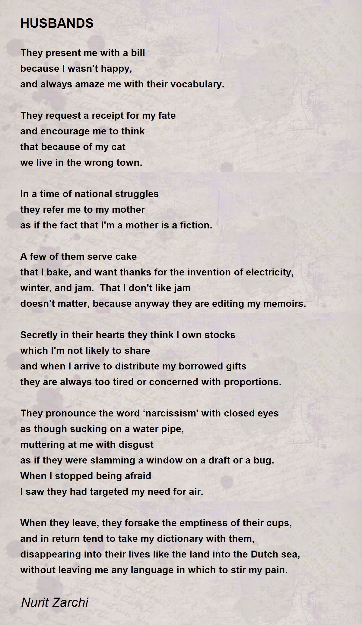 without leaving me any language in which to stir my pain.