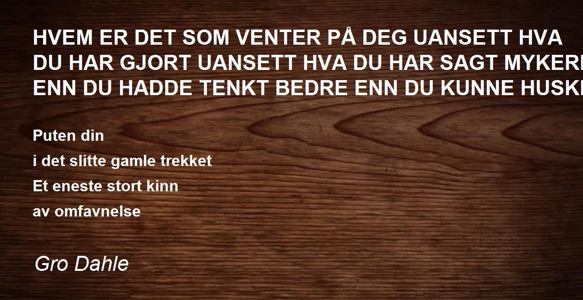 Puten din i det slitte gamle trekket Et eneste stort kinn av omfavnelse