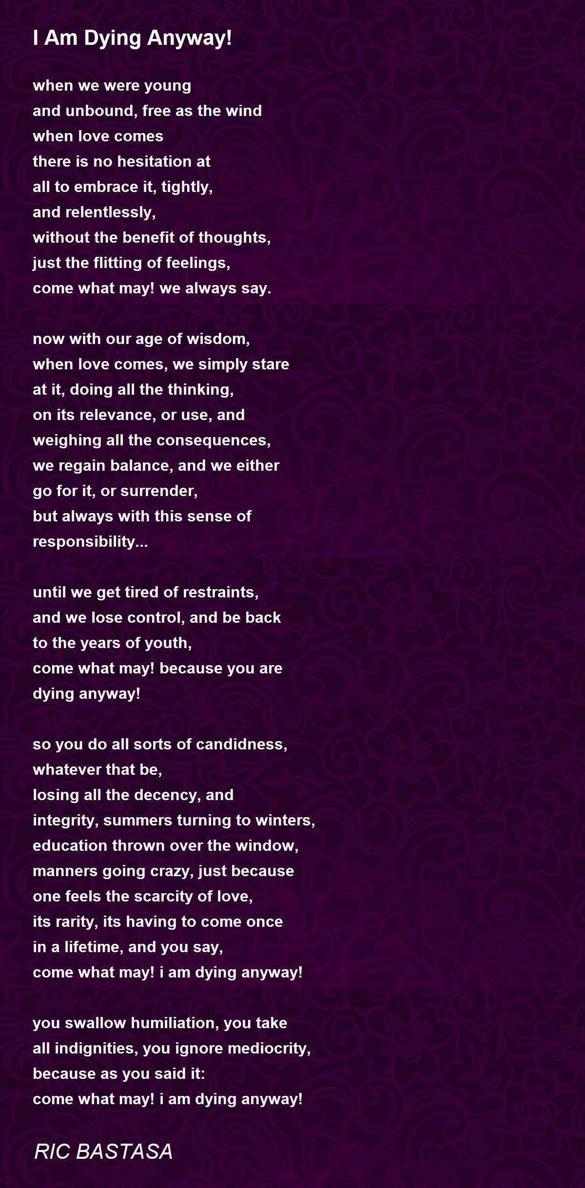 come what may! i am dying anyway!