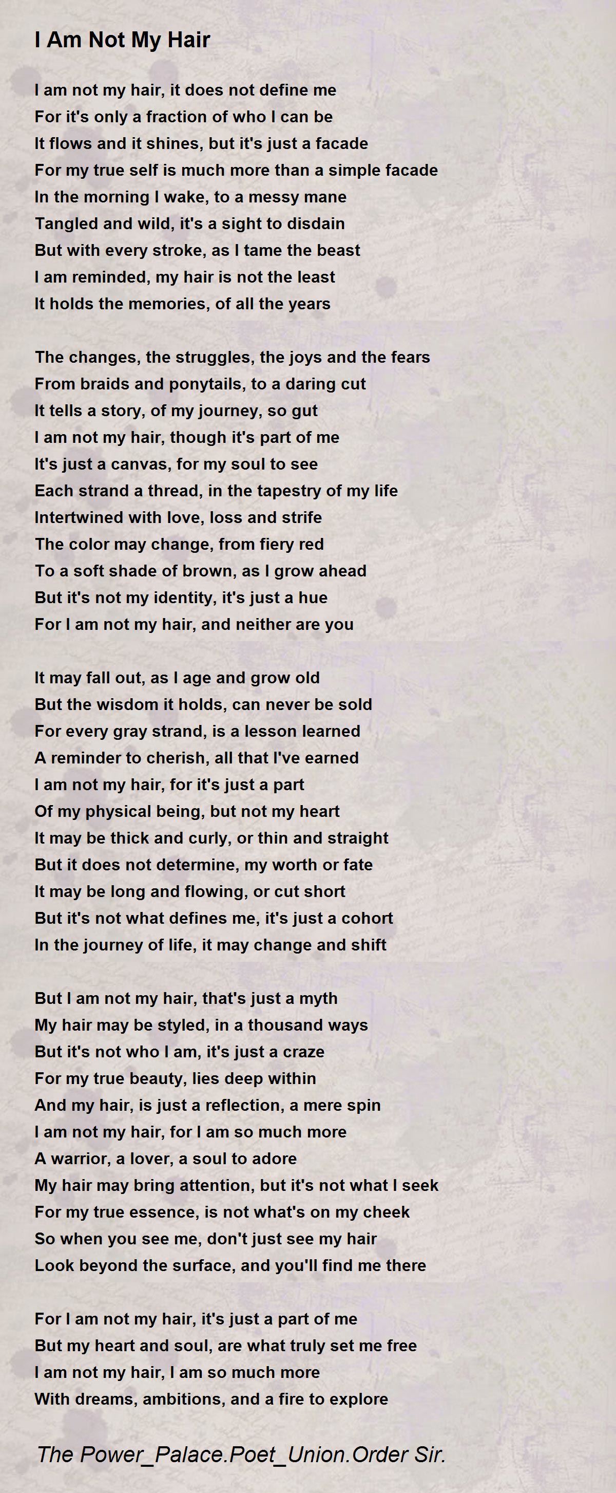 For I am not my hair, and neither are you