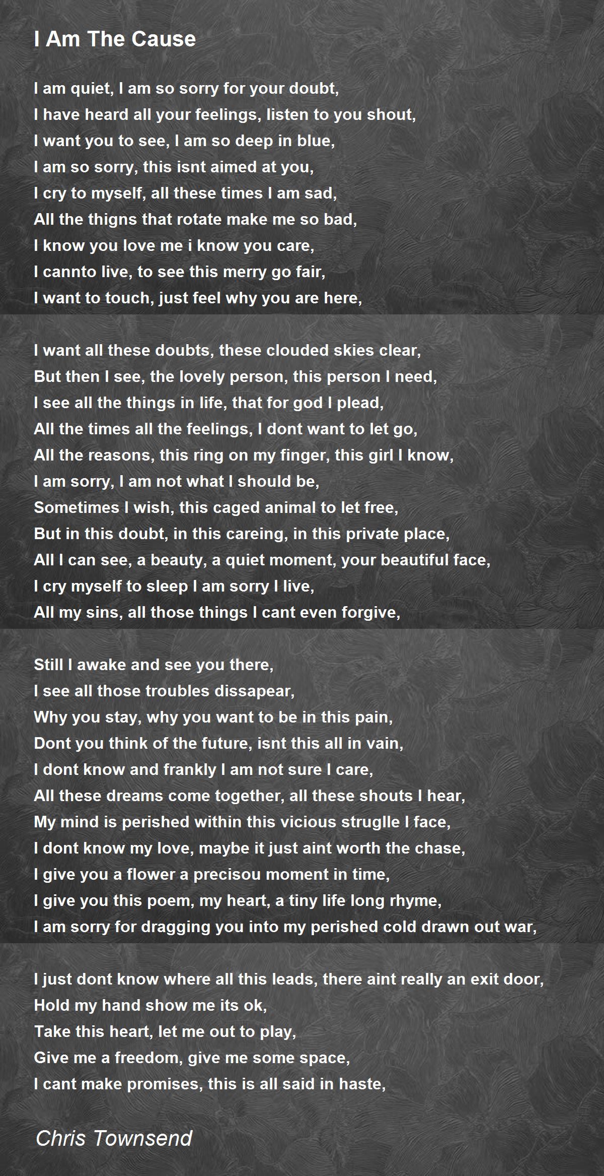 I cry myself to sleep I am sorry I live,