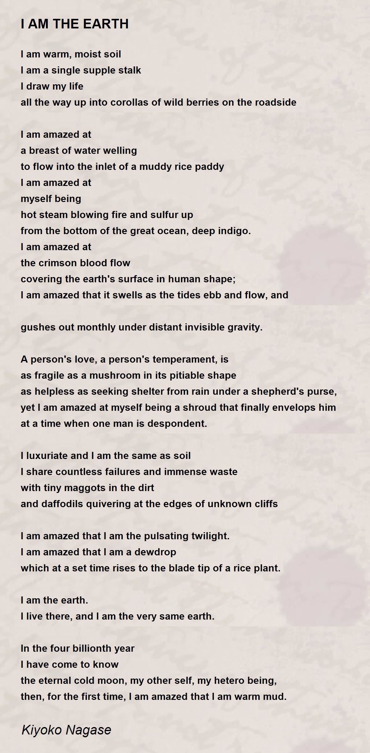 The earth is everything, if there was no earth there wouldn't be any of us. A great poem.