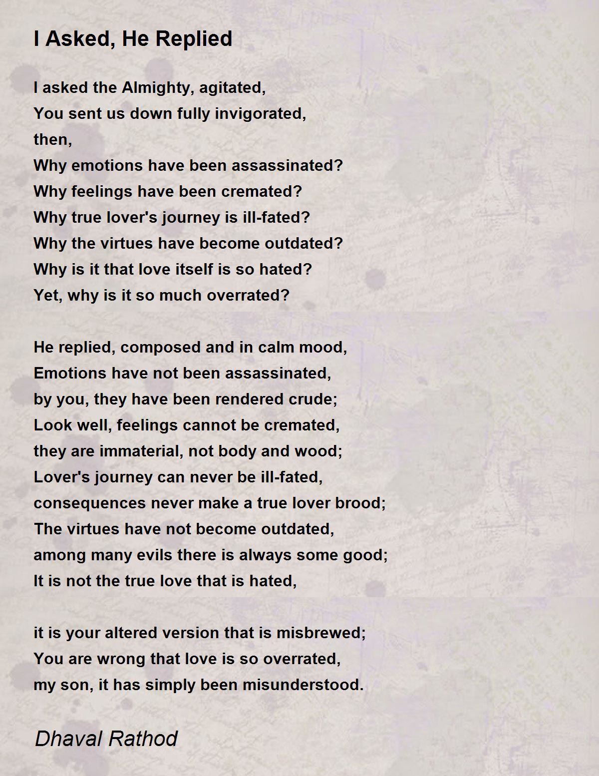 I asked the Almighty, agitated,