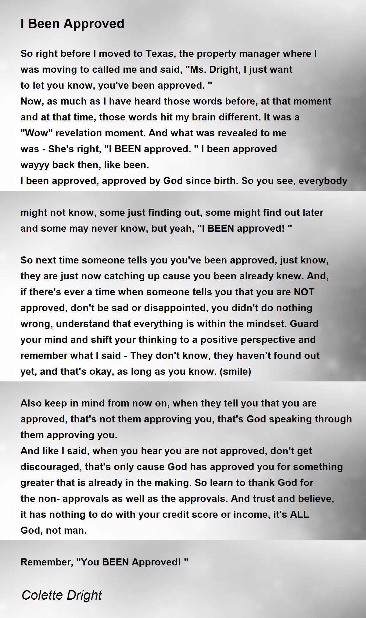 Remember, "You BEEN Approved! "