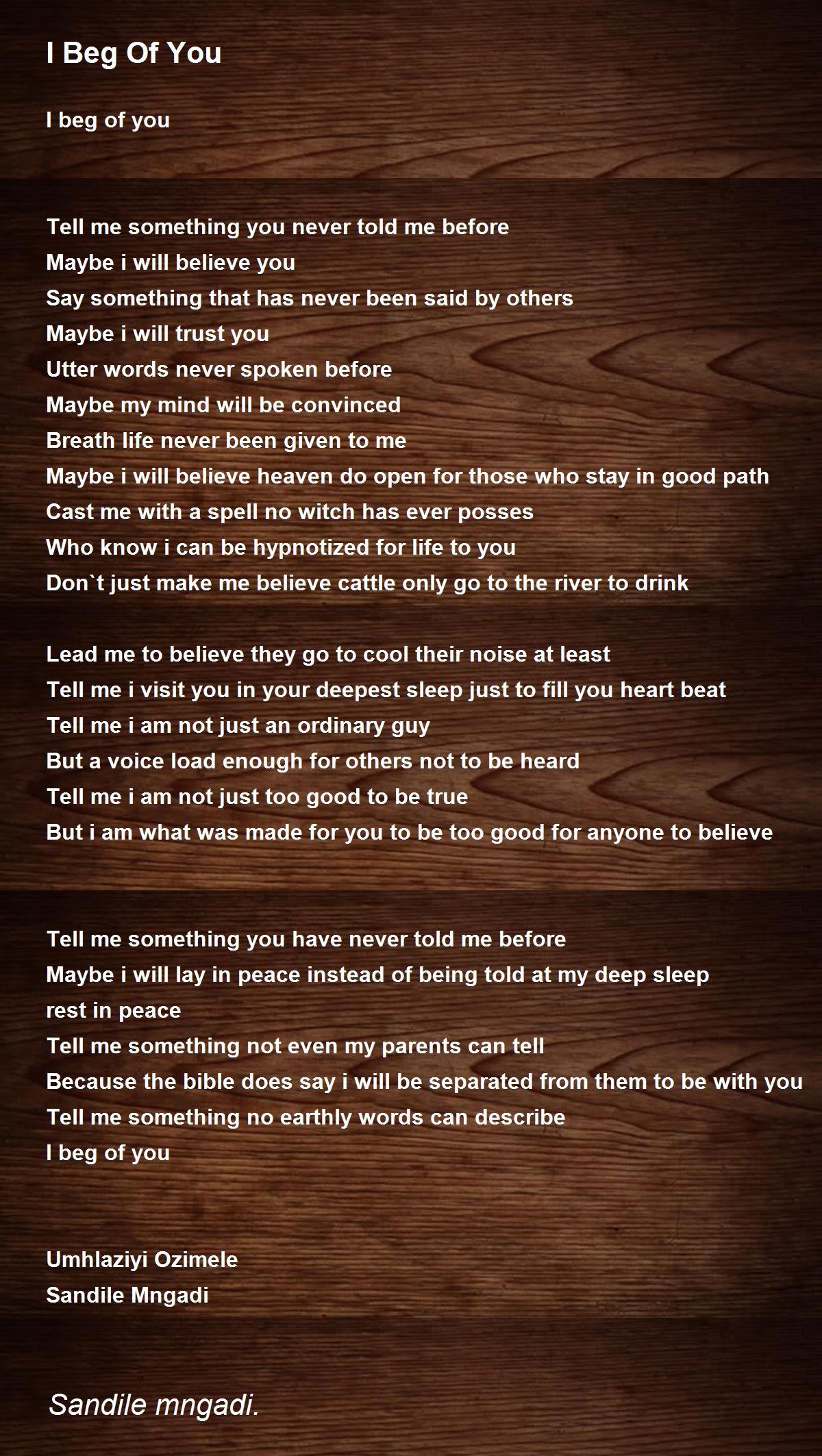 I beg of you