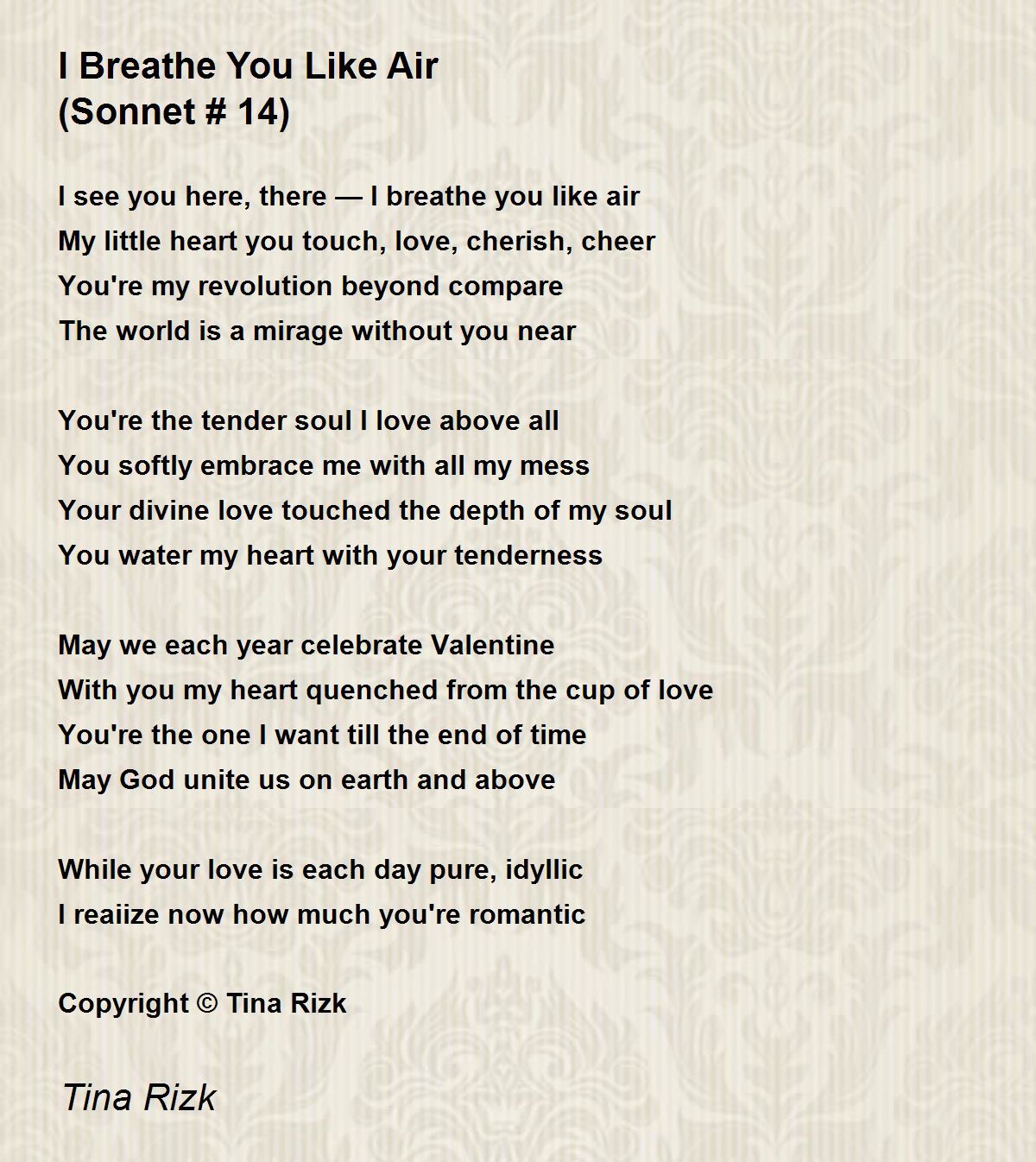 I see you here, there — I breathe you like air