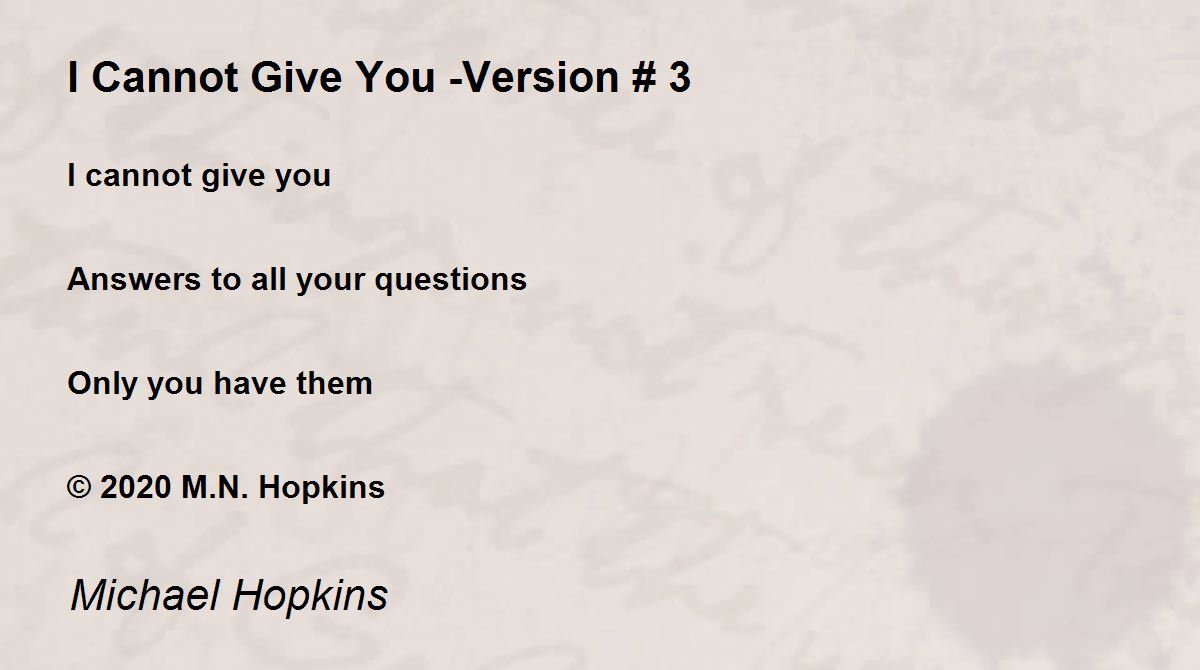 I Cannot Give You -Version # 3 Poem by Michael Hopkins