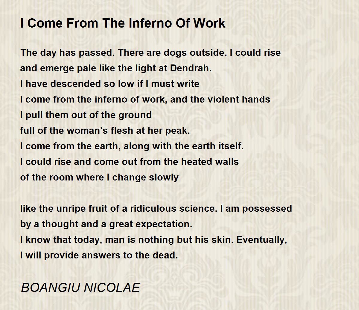 I come from the inferno of work, and the violent hands