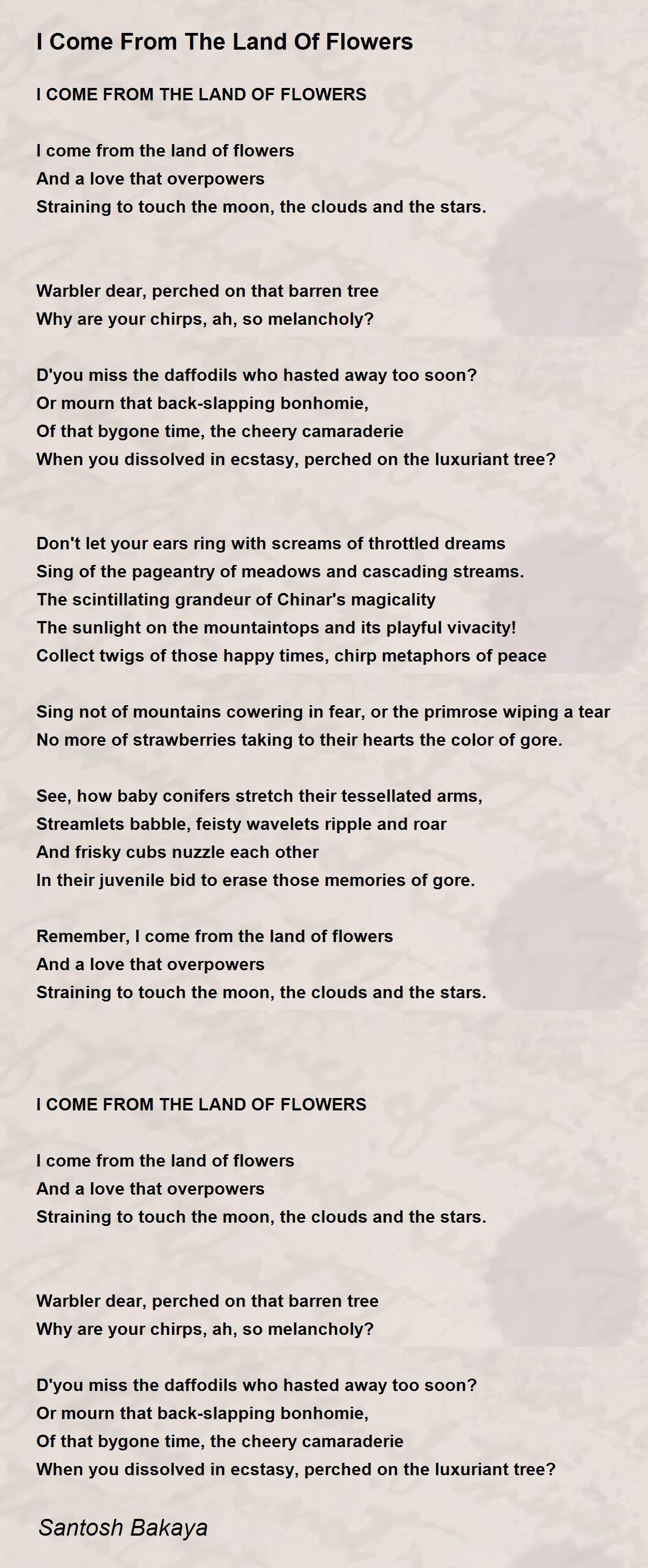 I COME FROM THE LAND OF FLOWERS