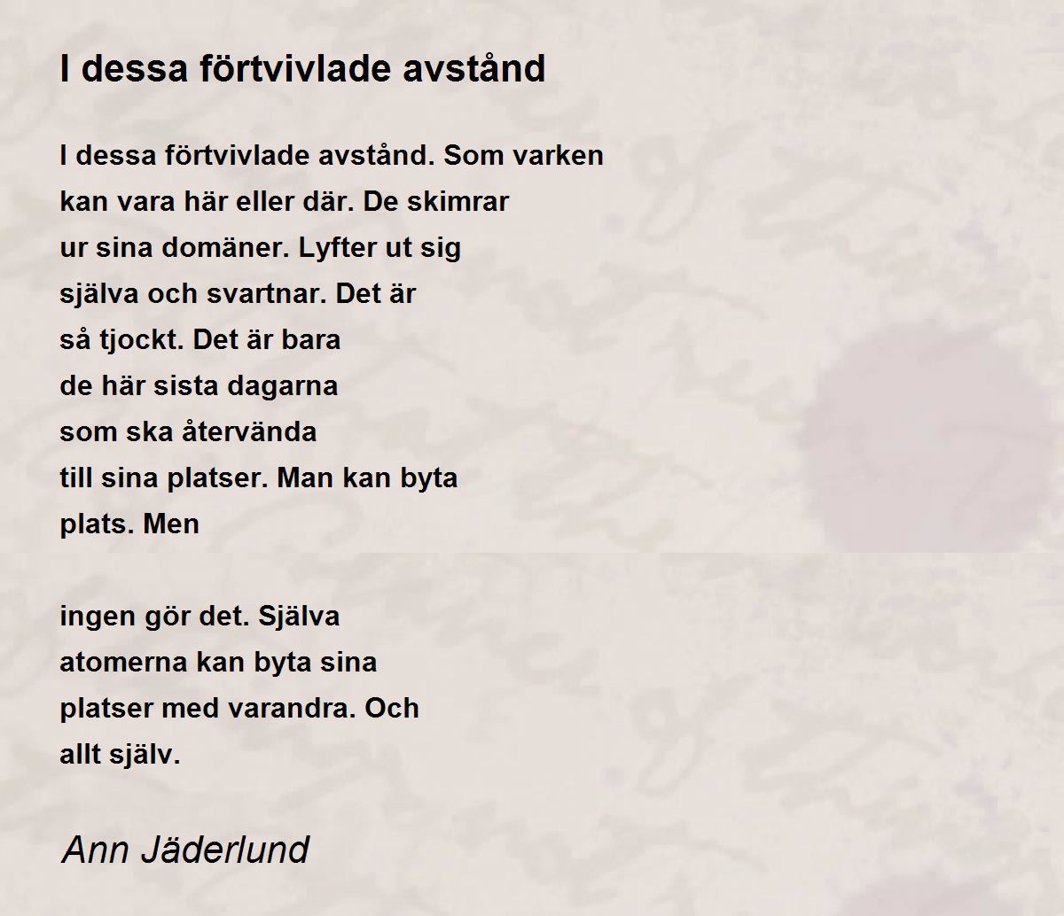 I dessa förtvivlade avstånd. Som varken