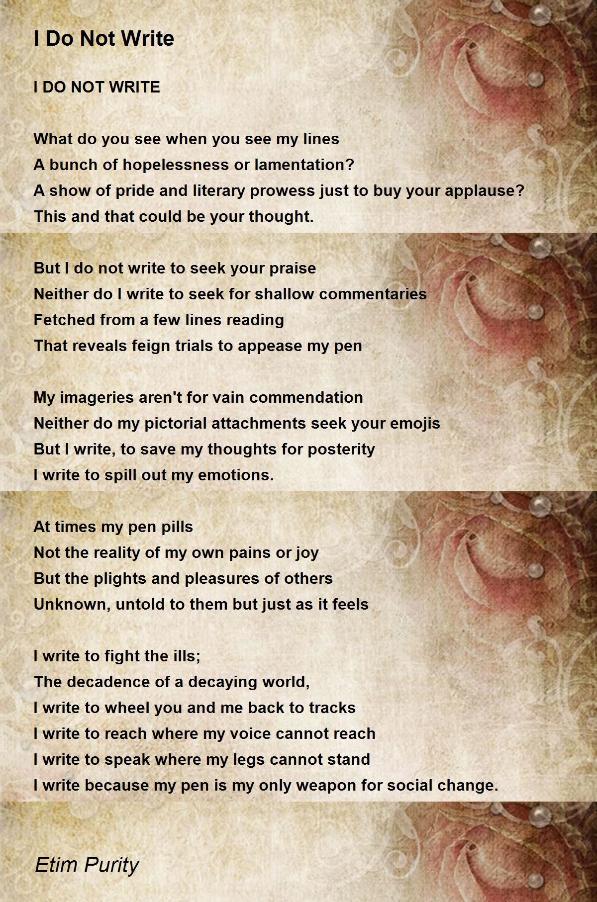 I DO NOT WRITE
