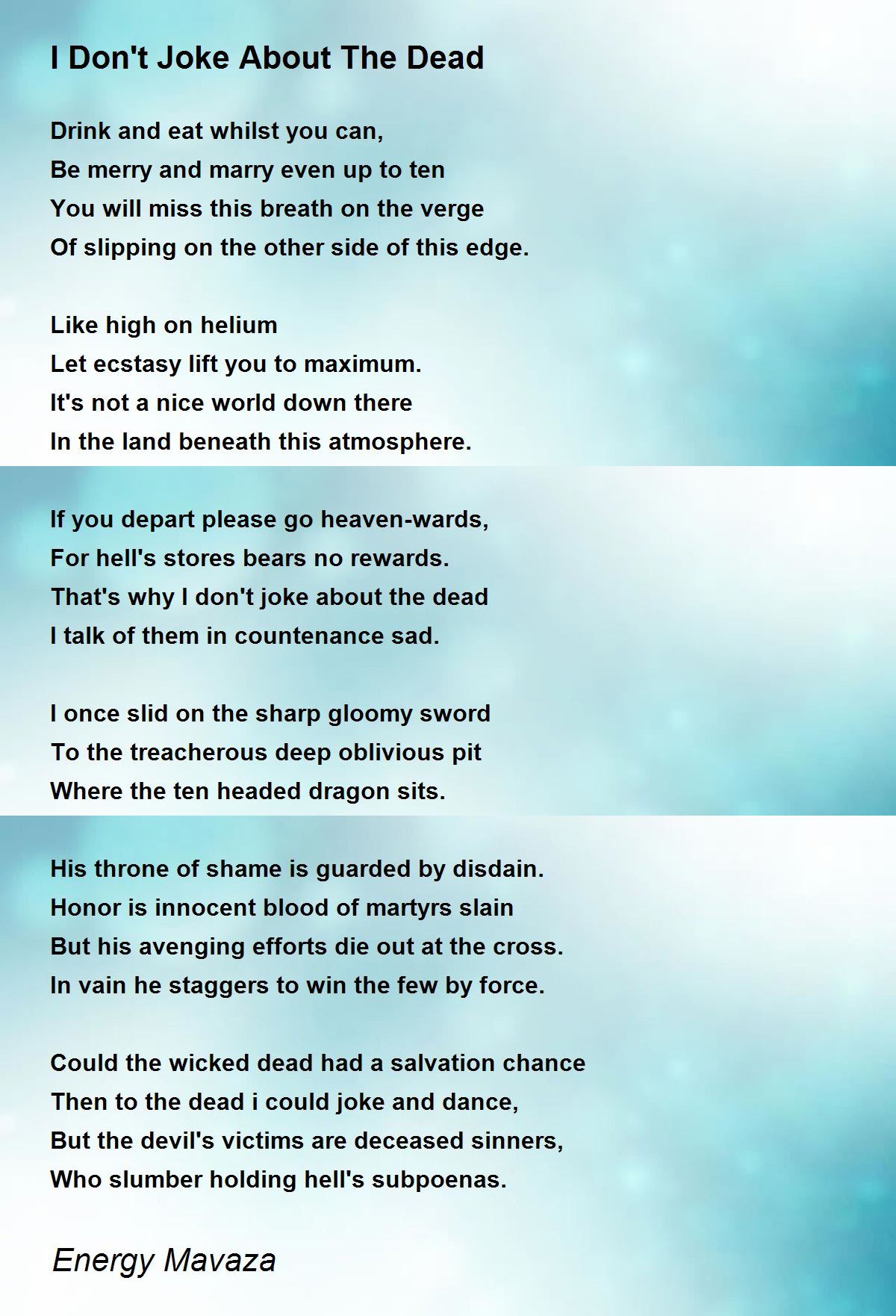 Then to the dead i could joke and dance,