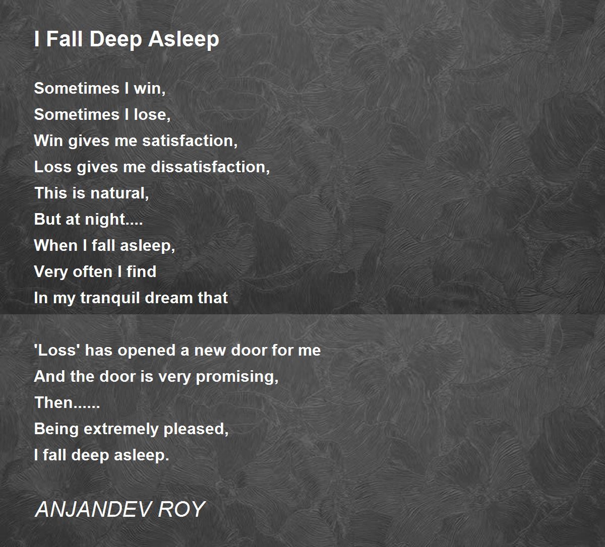 I fall deep asleep.