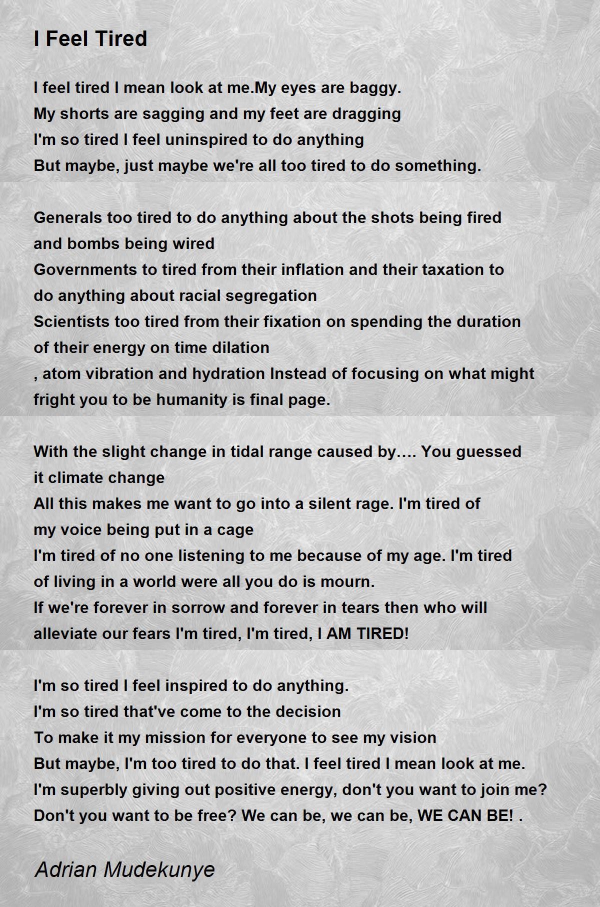 If we're forever in sorrow and forever in tears then who will alleviate our fears I'm tired, I'm tired, I AM TIRED!