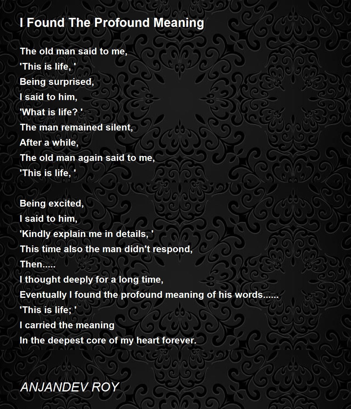 Eventually I found the profound meaning of his words......