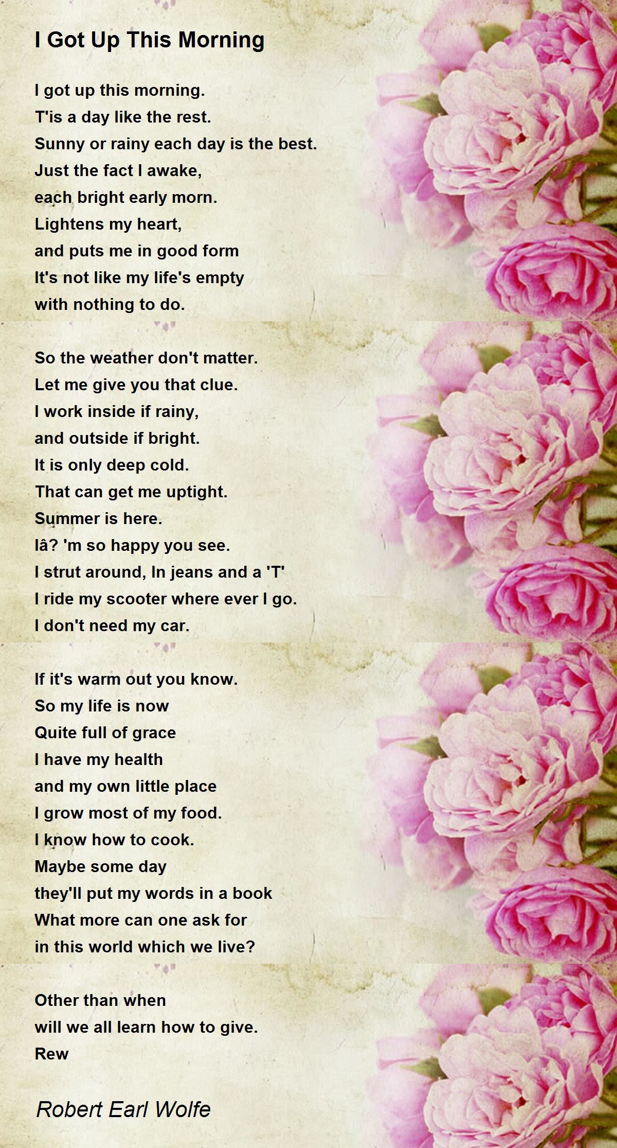 Maybe some day they'll put my words in a book What more can one ask for in this world which we live? Other than when will we all learn how to give. Giving away to others especially to the one who is needy is a great ability. you become a spiritual person in this profit oriented world. thank you. tony