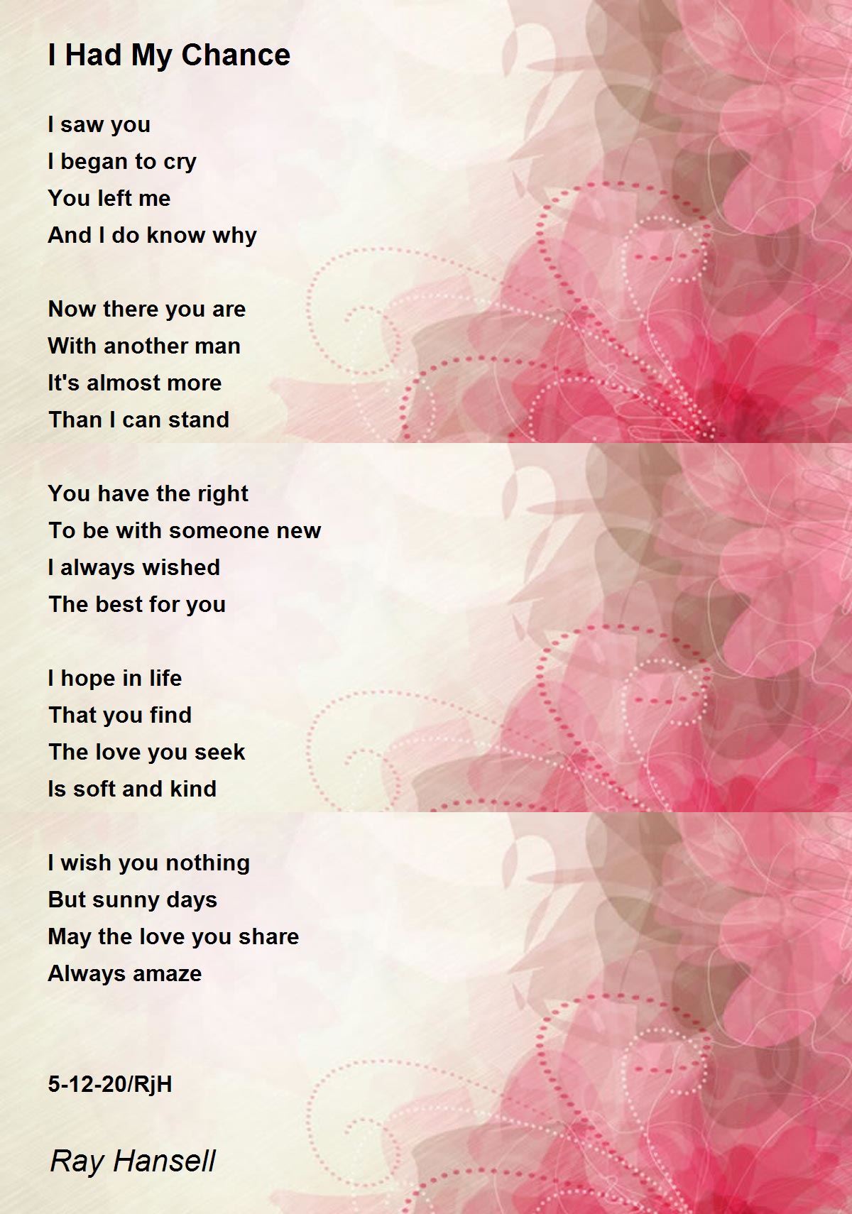 The cause of leaving was unknown but still the separation have pain. Life is full of beauty and love. We hope love will be revived. This is a nice poem.