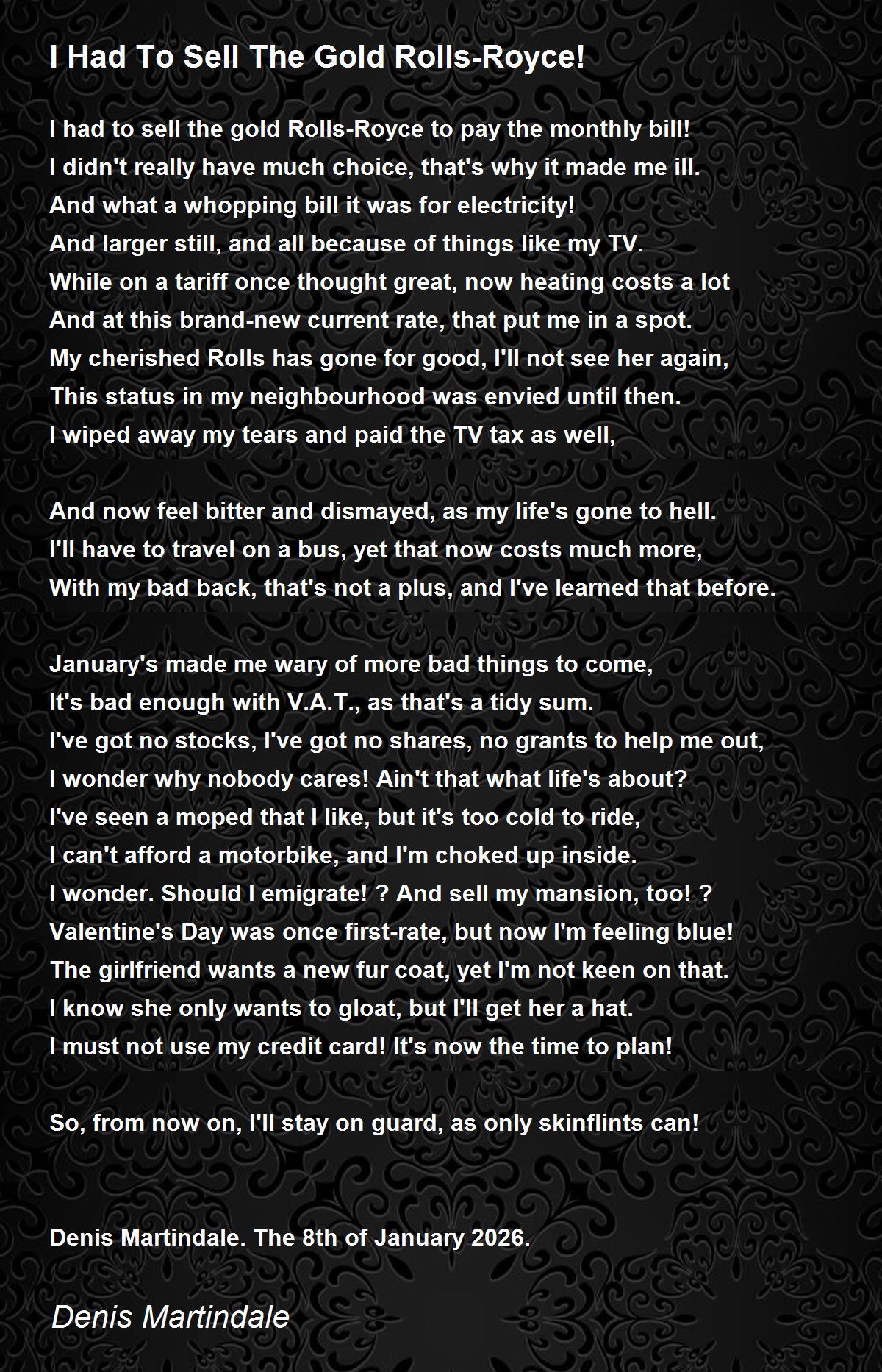 I had to sell the gold Rolls-Royce to pay the monthly bill!