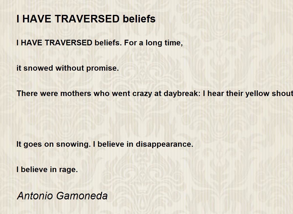 I HAVE TRAVERSED beliefs. For a long time,