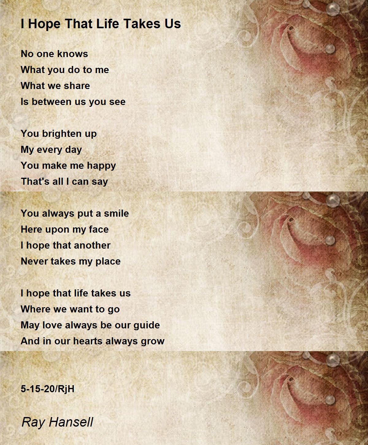 I hope that life takes us