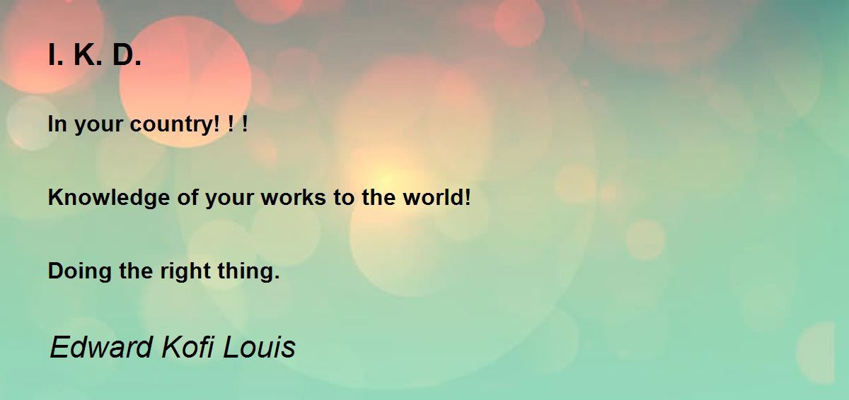 In your country! ! ! Knowledge of your works to the world! Doing the right thing.