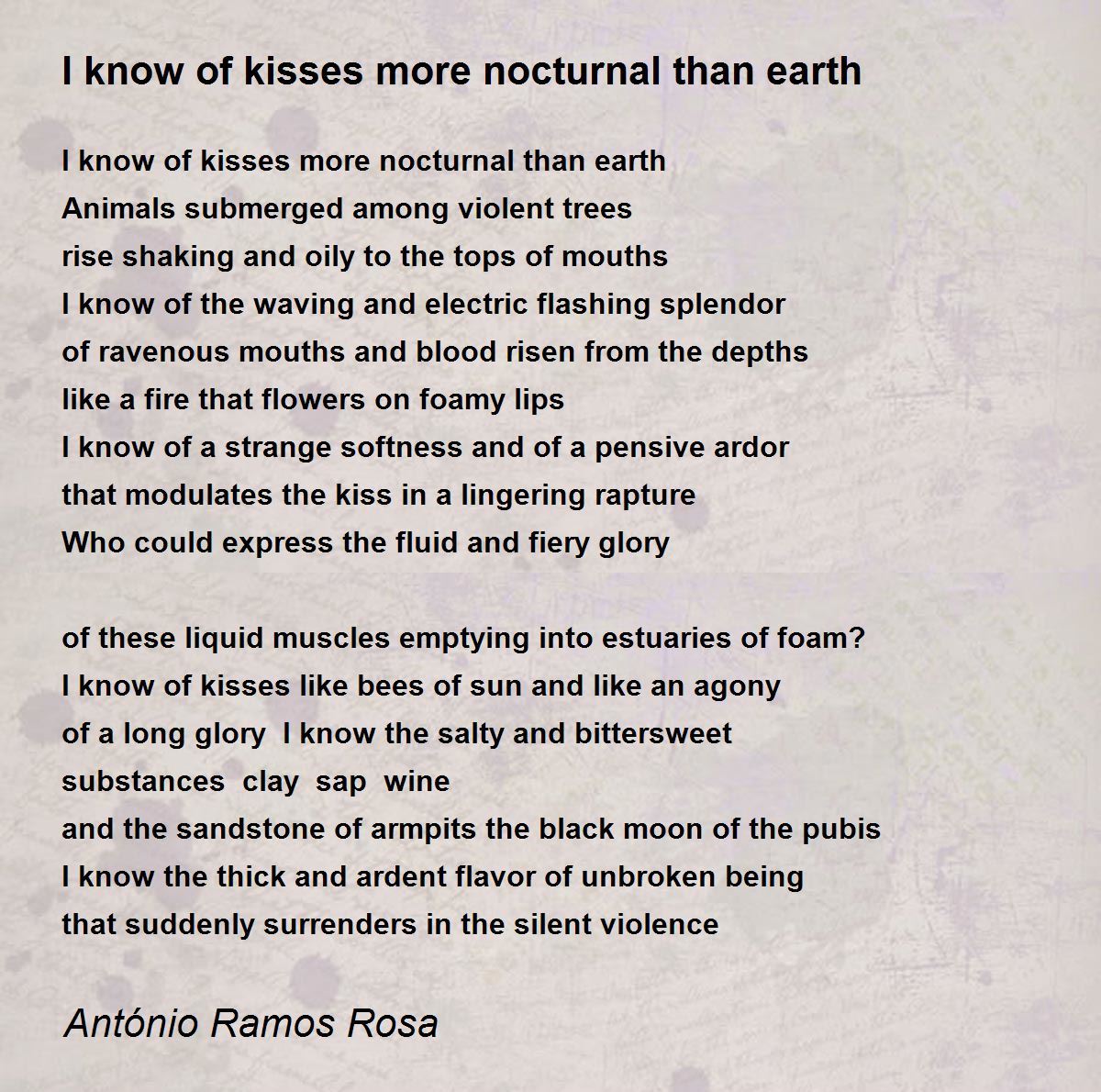 I know of kisses more nocturnal than earth